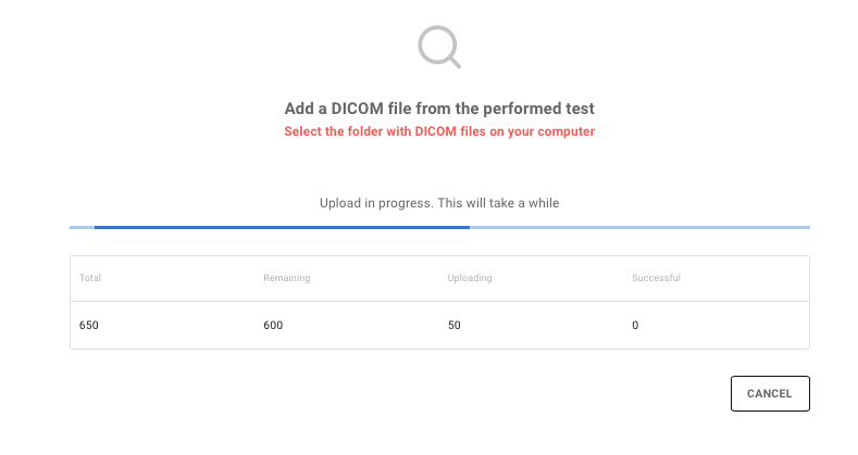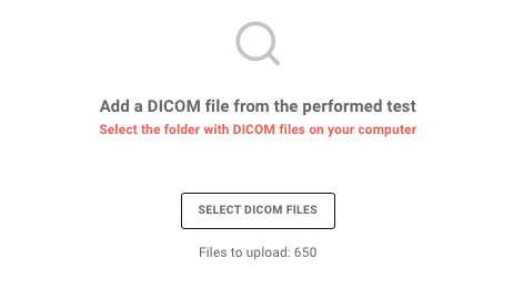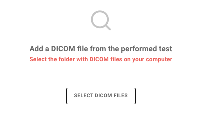 Po wprowadzeniu ID Wzornika gęstości kolejnym krokiem jest wskazanie źródła plików DICOM, w tym celu klikamy w „SELECT DICOM FILES” i podajemy ścieżkę dostępu do katalogu w którym zostały wyeksportowane pliki *.dcm badania tomograficznego.