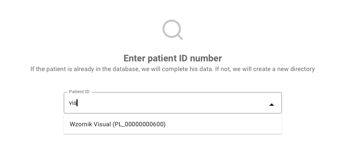 Następnie po otwarciu procesu zlecenia wybrać pacjenta z listy. Można wyszukać wprowadzając imię lub nazwisko Pacjenta lub jego ID.