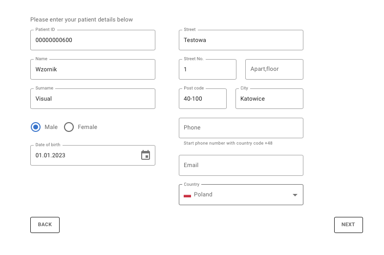Pojawia się nam karta Pacjenta w której jeśli jest taka konieczność można wprowadzić zmian. Jeśli dane są poprawne klikamy „NEXT”