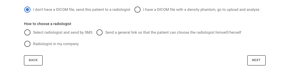 Lub skierować Pacjenta do dowolnego punktu radiologicznego (UWAGA: Pacjent musi zostać poinforowany, że zdjęcie musi być wykonane ze wzornikiem gęstości) – „Send a general link so that the patient can choose the radiologist himself/herself”
