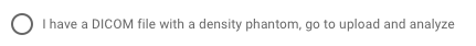 - Mam dostęp do pliku DICOM wykonany ze wzornikiem gęstości – „I have a DICOM file with a density phantom, go to upload and analyze”.